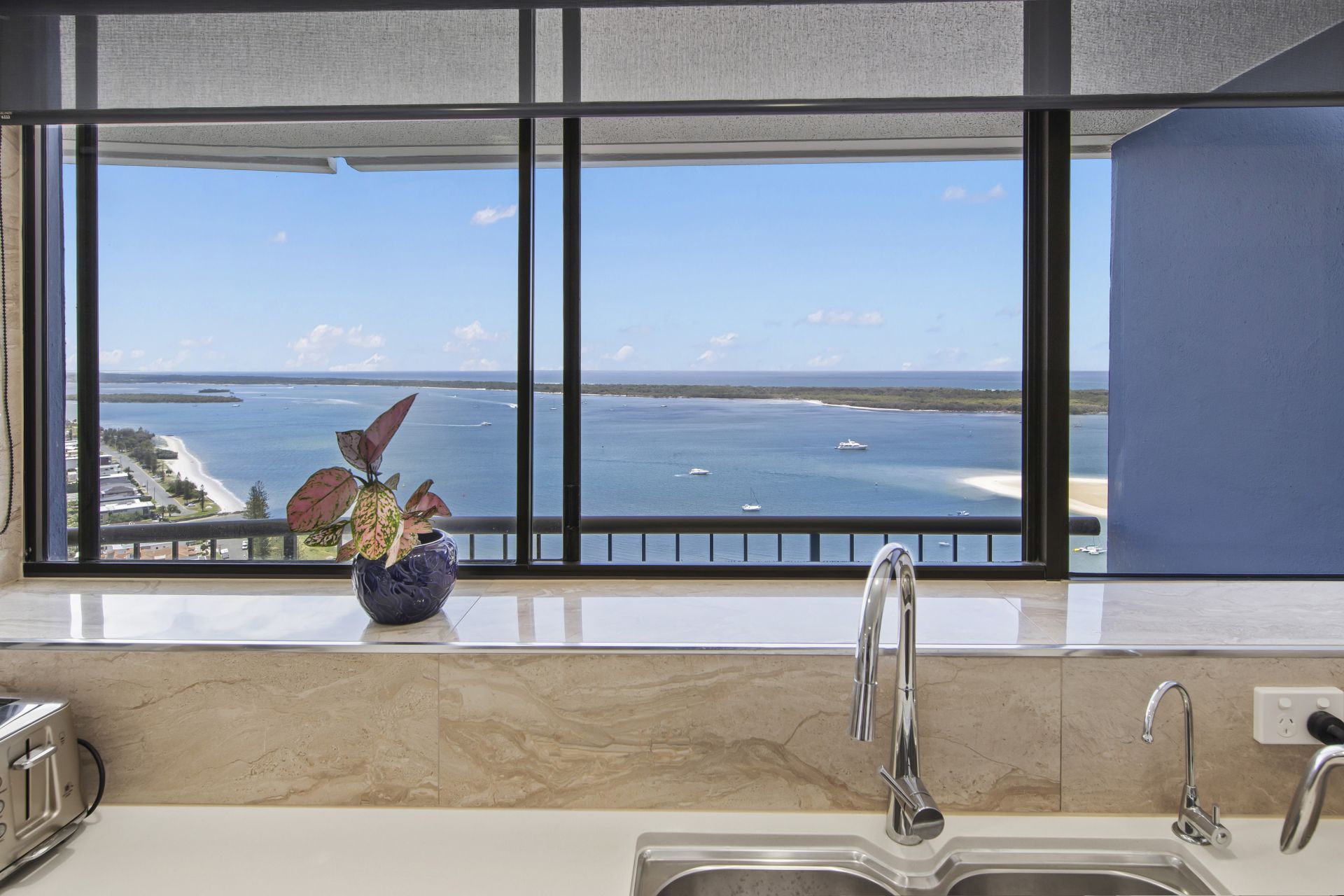 This tastefully renovated unit offers sensational 180-degree views of the Broadwater. Positioned perfectly on the 31st floor.